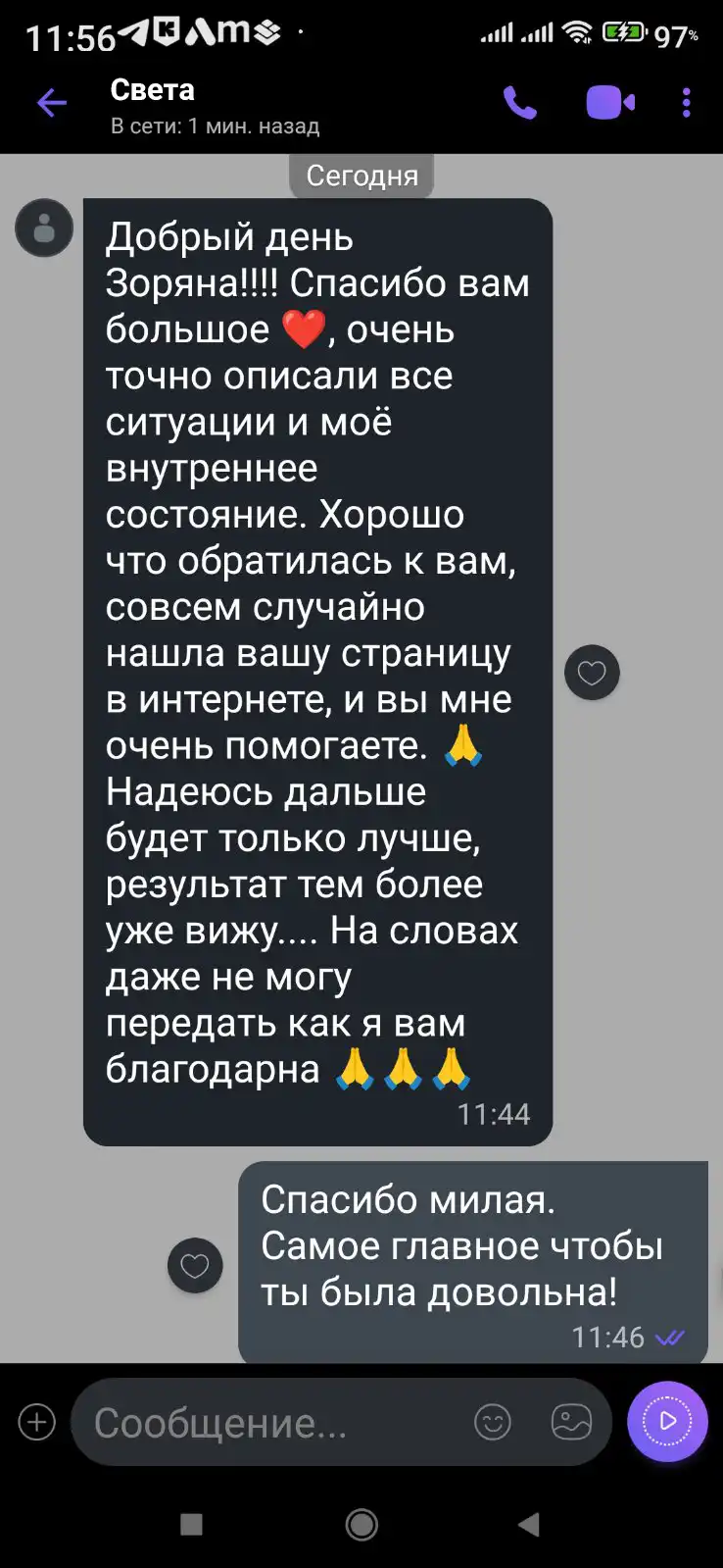 "Величезна подяка Вам за все, що Ви робите! Я безмежно вдячна Богу за те, що Ви є в моєму житті, і за ту допомогу, яку Ви надаєте. З Вами легко, тепло і спокійно. Ви завжди відкриваєте своє серце і підтримуєте у найважливіші моменти. Завдяки Вам я щаслива, люблю і відчуваю себе коханою! Нехай добро, яке Ви даруєте людям, повертається до Вас у тисячі разів більше. Нехай у Вашому житті буде тільки світло та любов!"